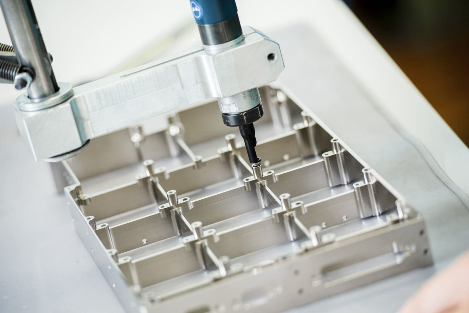 In der Feinwerktechnik fertigt Freyer Komponenten für Messinstrumente, optische Komponenten und komplette Baugruppen. Typische Beispiele sind Messvorrichtungen und Spiegel für optische Messinstrumente – meist mit extrem engen Toleranzen, komplexen Geometrien und hohem Zerspanungsgrad, oft als Einzelteil, in niedrigen Stückzahlen oder kleinen Serien. Zum Leistungsspektrum gehören Dreh- und Frästeile, Blechteile, Montage, Oberflächenbehandlungen sowie die Erstellung von Messprotokollen und Machbarkeitsprüfungen. Der Maschinenpark ist auf diese Anforderungen abgestimmt und umfasst hochgenaue Anlagen, die auf kleinste Bauteile und anspruchsvolle Geometrien spezialisiert sind.